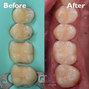 当院にて虫歯の治療を行い、再発をできるだけ防ぎたいとのご希望から、2本同時にセラミックによる修復を実施いたしました。