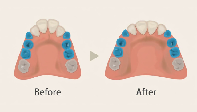 永久歯がはえるスペースが足りない場合、奥歯を後ろに移動させたり、あごの横や前への成長を促すことによりスペースが出来ます。 早期治療により将来的に永久歯を抜歯せずに本格矯正(ワイヤーによる矯正)ができる可能性が高くなります。